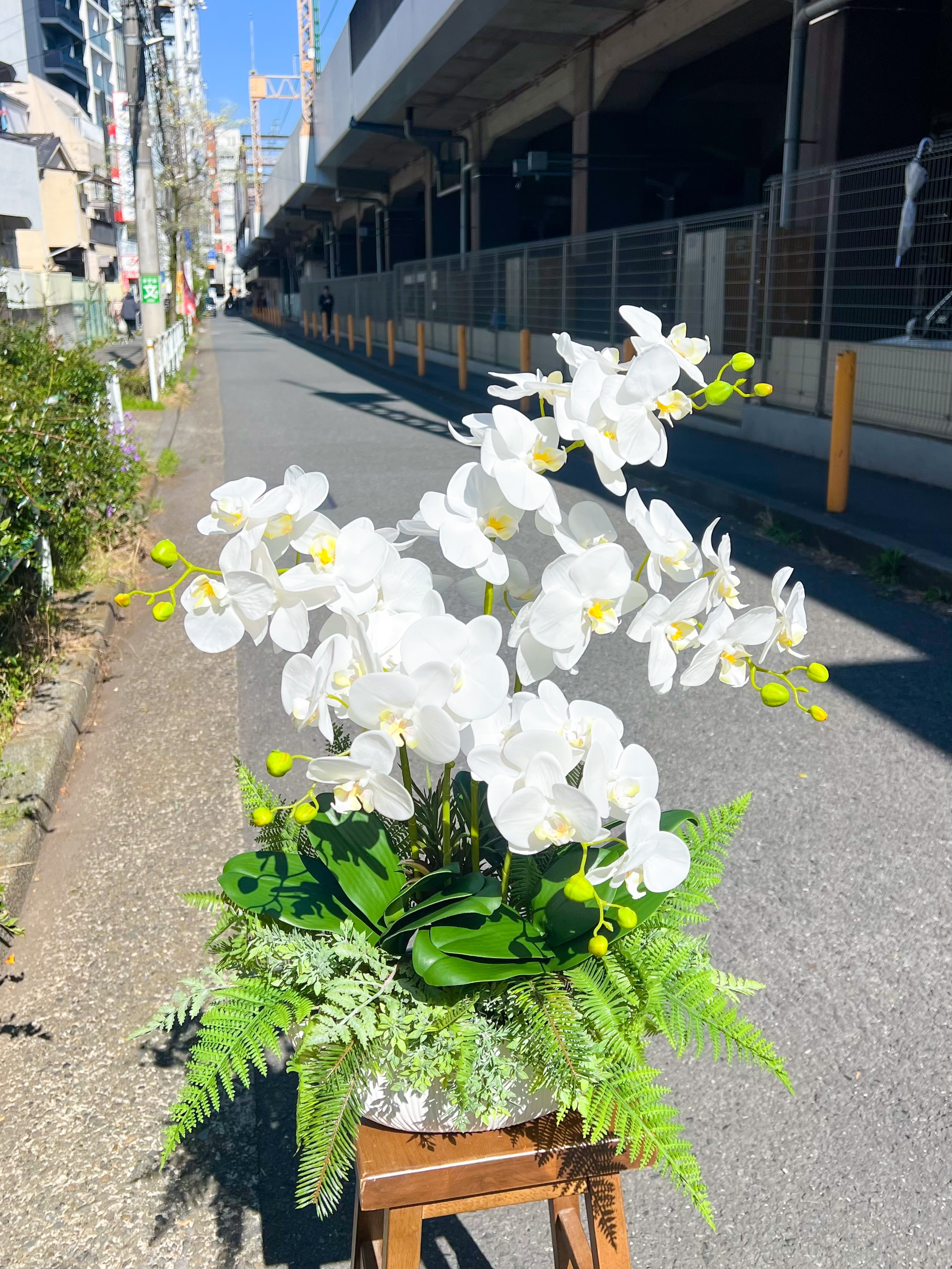 上質なアーティフィシャルフラワー(造花)で仕立てた、胡蝶蘭の植え込みです。